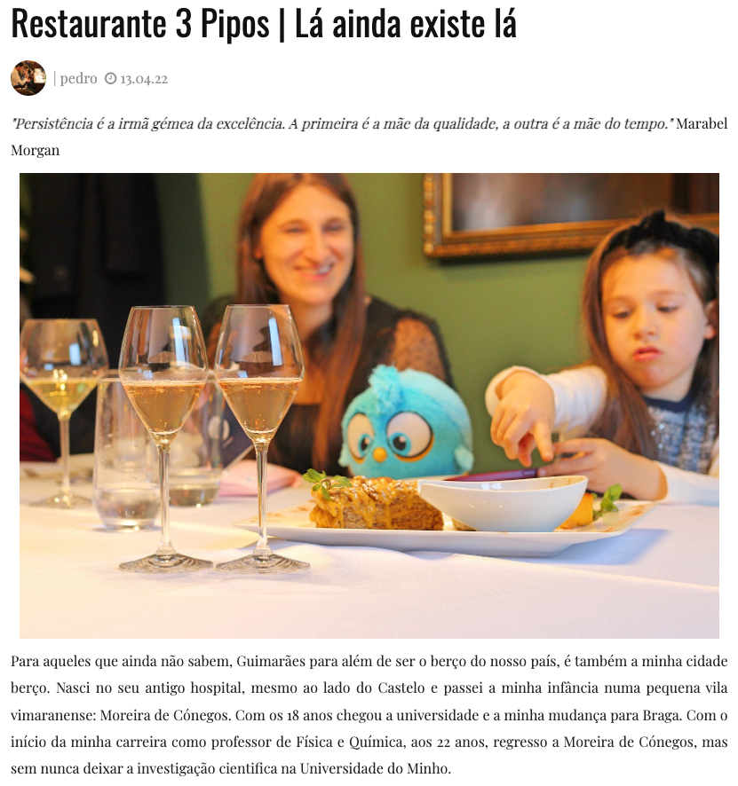 No 3 Pipos, em Tonda, vai-se para ficar e ao longo da vida vão-se descobrindo sabores e pratos (...)