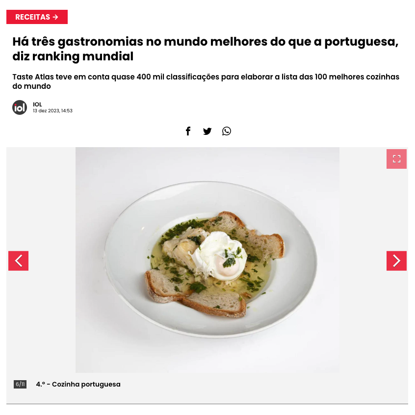 Reconhecimento de melhor Restaurante de Cozinha Tradicional Portuguesa de 2023.